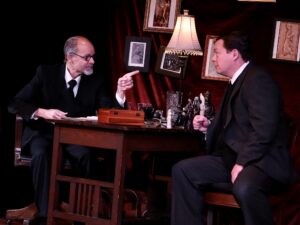 I never expected to set foot in Freud’s study, let alone back in 1939 on the cusp of World War II … but this weekend, I found myself in that exact position while seeing Acacia Theatre’s production of Freud’s Last Session. The play, which brings to life a hypothetical conversation between Sigmund Freud (David Sapiro) and C.S. Lewis (Jason Will), was directed for the second time by Elaine Wyler, and its staging in the Norvell Commons kept it intimate and captivating.